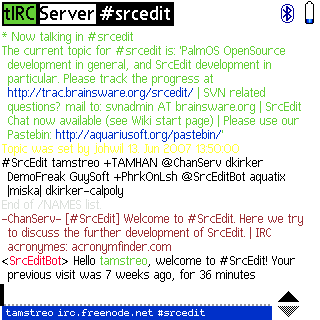 tIRC for Palm OS makes IRC fun. Whereever you are, your channel follows!